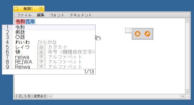 フォントについては和田研細丸ゴシックが U+32FF にいち早く対応ということなので併せて試してみました (変換候補が見やすいように標準フォントを大きくしています)。